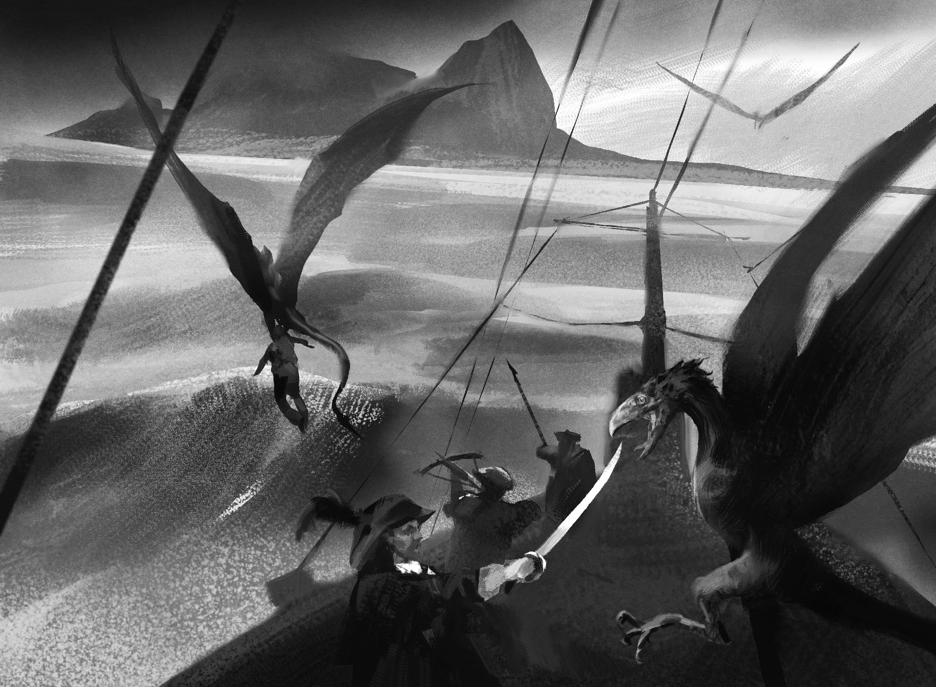 Ocultos en la bruma, estos reptiles alados vuelan en bandadas de varias docenas, y el batir de sus alas suena como el golpe sordo del viento contra las velas. Lo último que percibe el desafortunado marinero convertido en presa es una sombra súbita cerniéndose sobre él, antes de que unas garras lo eleven en el aire, dejando tras de sí un grito ahogado y el fatal recuerdo de su adiós.